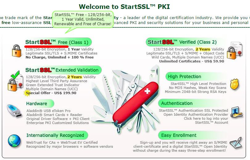 目前已經有三間廠商提供免費DV SSL證書申請的服務,包括StartSSLCloudFlareWosign,其中StartSSL是三家廠商中最為資深,網路上有許多相關的申請步驟,但大多採取自行生成CSR的方式產生.key檔,對於初學者來說操作容易失誤,而StartSSL又是少數不肯提供免費吊銷的廠商,同一網址只能等憑證一年後失效才能再次申請,因此以下提供比較便捷的申請方式。