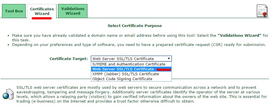 點選”Web Sever SSL/TLS Certificate”後下一步 (驗證網域方式請參考網路教學)