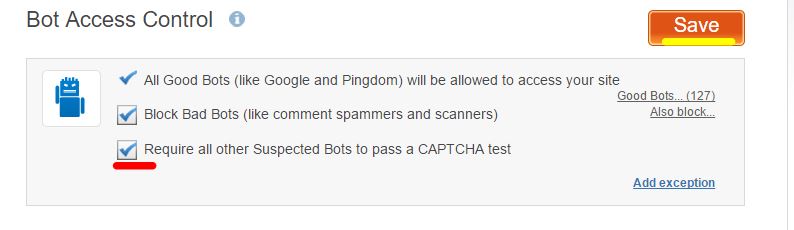 勾選Require all other Suspected Bots to pass a CAPTCHA test並Save儲存