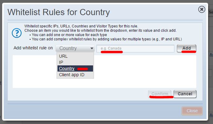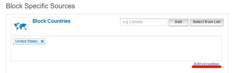 如果要完全允許某個國家訪問,請點選Block Countries右下角的Add exception